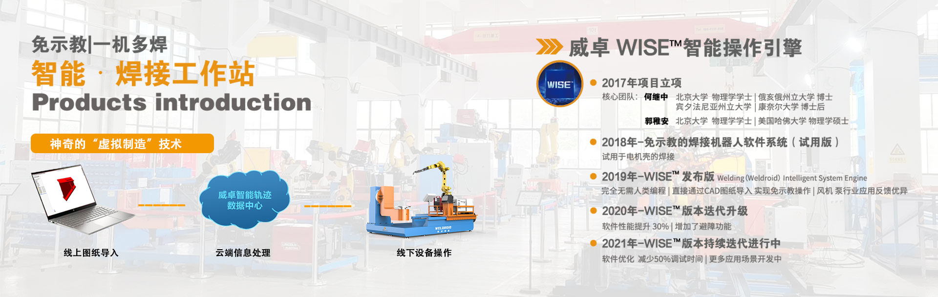 立即咨詢 現(xiàn)在聯(lián)系我們:0510-85384033無錫威卓智能機器人有限公司成立于2017年,是無錫市政府引進(jìn)的科技領(lǐng)軍型高新技術(shù)企業(yè),公司研發(fā)團(tuán)隊80余人,我們堅持自主創(chuàng)新,利用自主開發(fā)的虛擬制造技術(shù)對傳統(tǒng)焊接行業(yè)進(jìn)行升級改造。 公司主推的工業(yè)風(fēng)機系列-智能焊接工作站產(chǎn)品,具有免示教、實時跟蹤、簡易工裝、傻瓜式操作等優(yōu)點,真正幫助企業(yè)解決了招焊工難,用工成本高,焊接質(zhì)量不穩(wěn)定等問題。